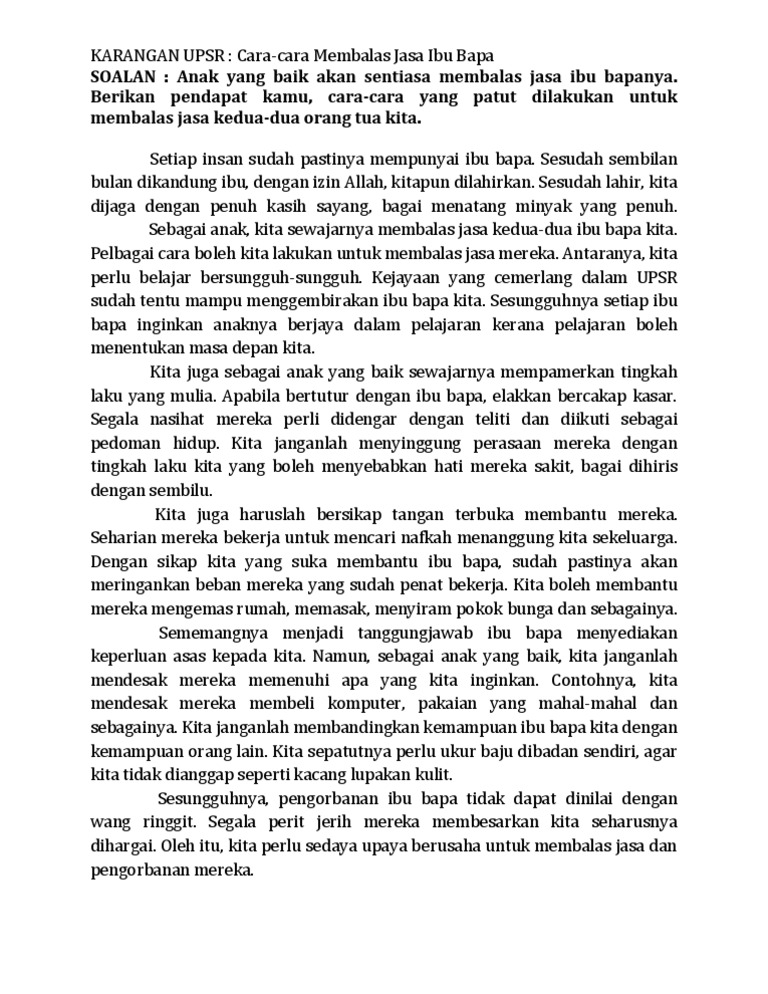 Contoh Karangan Tentang Cara-cara Nak Untuk Membalas Jasa Ibu Bapa